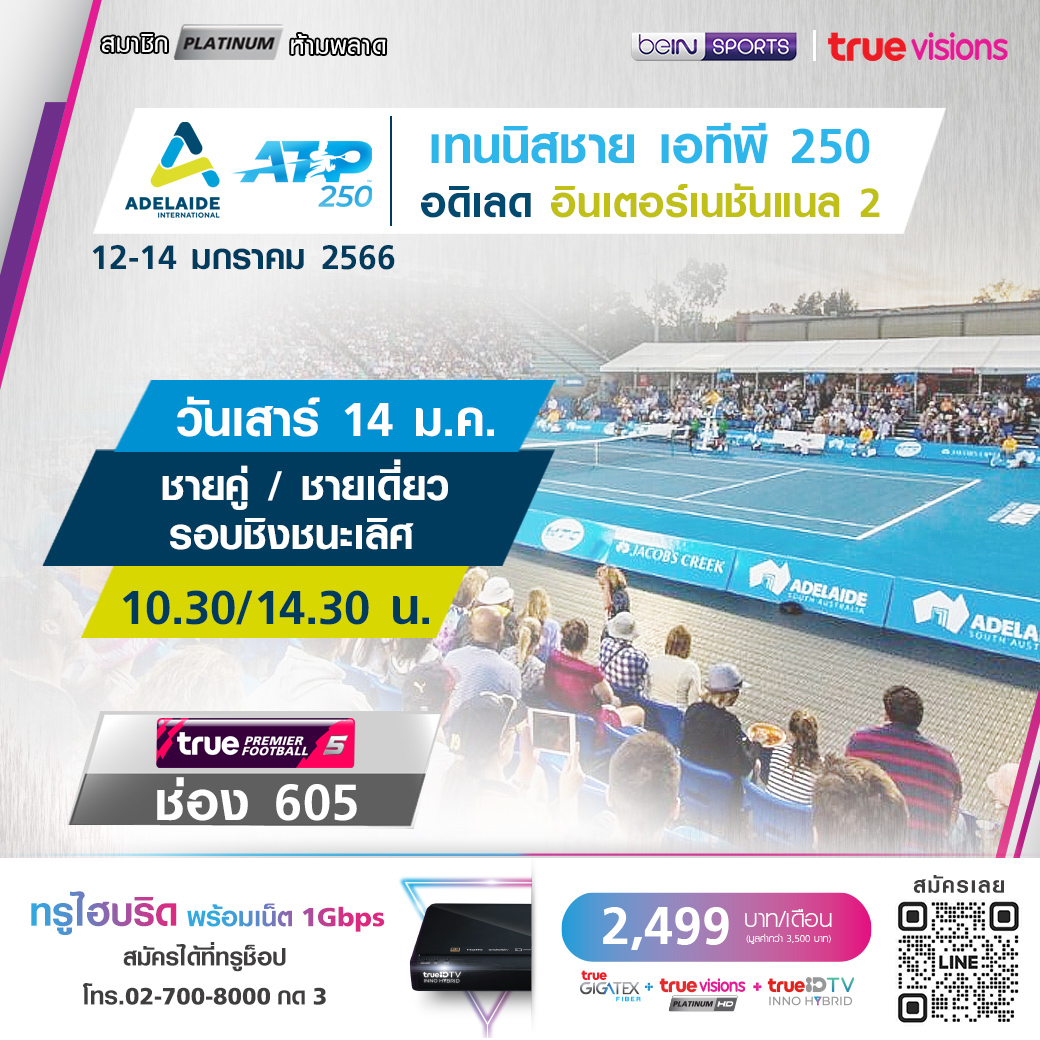 เทนนิสชาย เอทีพี อดีเลด อินเตอร์เนชั่นแนล 2 จากประเทศออสเตรเลีย เดินทางมาถึงรอบชิงชนะเลิศทั้งประเภทชายคู่ และชายเดี่ยว ลุ้นกันว่าใครจะก้าวสู่การเป็นแชมป์รายการนี้ ชมสด ทาง ทรูวิชั่นส์