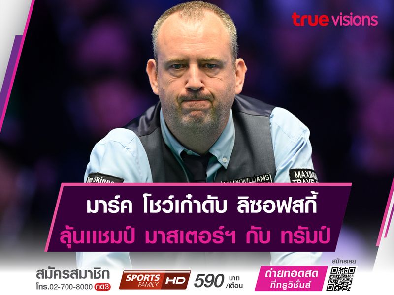 ศึกสอยคิวรายการใหญ่ "มาสเตอร์ 2023" ชิงเงินรางวัลรวมทั้งสิ้น 725,000 ปอนด์(ประมาณ 30 ล้านบาท) เมื่อวานที่ผ่านมา(14 มกราคม) เป็นการชิงชัยในรอบรองชนะเลิศ มาร์ค เจ วิลเลียมส์ มืออันดับ 7 ของโลก พบกับ เเจ็ค ลิซอฟสกี้ มืออันดับ 12 ของโลก โดยสถิติที่ผ่านมา มาร์ค เอาชนะไปได้ 4 ครั้ง จากการพบกันทั้งหมด 7 ครั้ง