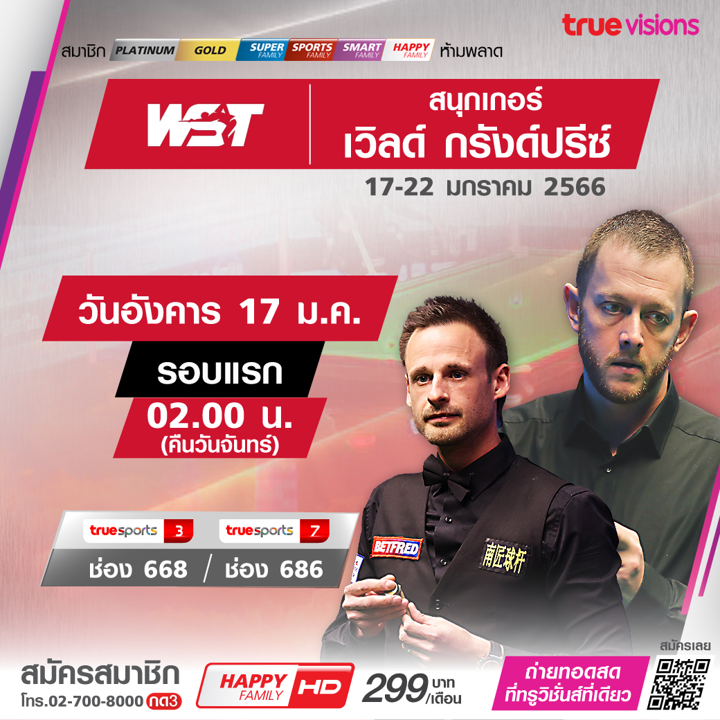 แฟนๆ สนุกเกอร์ พลาดไม่ได้ กับรายการเก็บคะแนนสะสม เวิลด์ กรังด์ปรีซ์ 2023 ที่คัดมาเฉพาะ 16 มือวางสูงสุดของปีนี้ มันส์ทุกแม็ตช์ สนุกเร้าใจทุกรอบ ลุ้นกันว่าใครจะเข้าป้ายเป็นแชมป์ในปีนี้ ชมสด ทาง ทรูวิชั่นส์ ที่เดียว