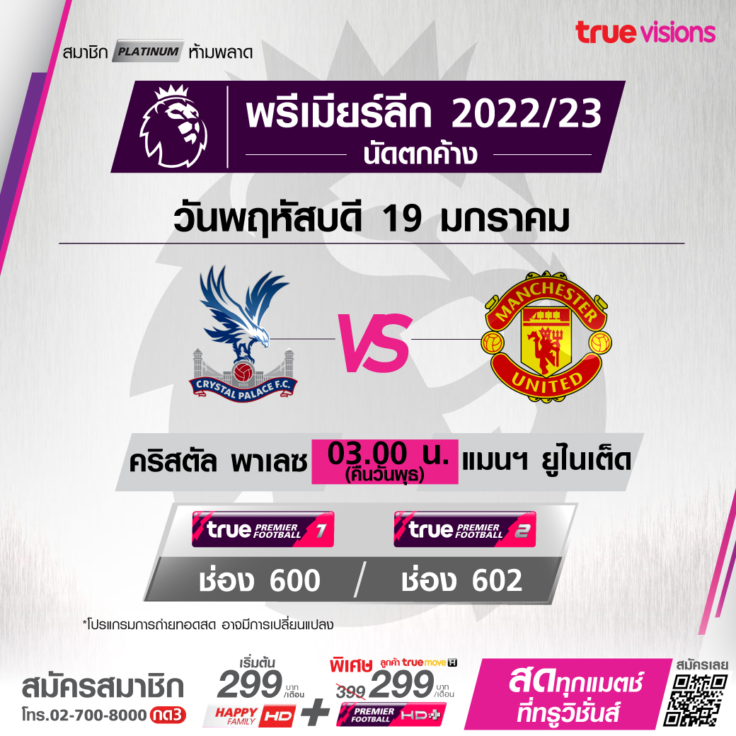 Crystal Palace vs Man Utd เวลา 03:00 - 05:00ทางช่อง TPF 1 (600) / TPF 2 (602)