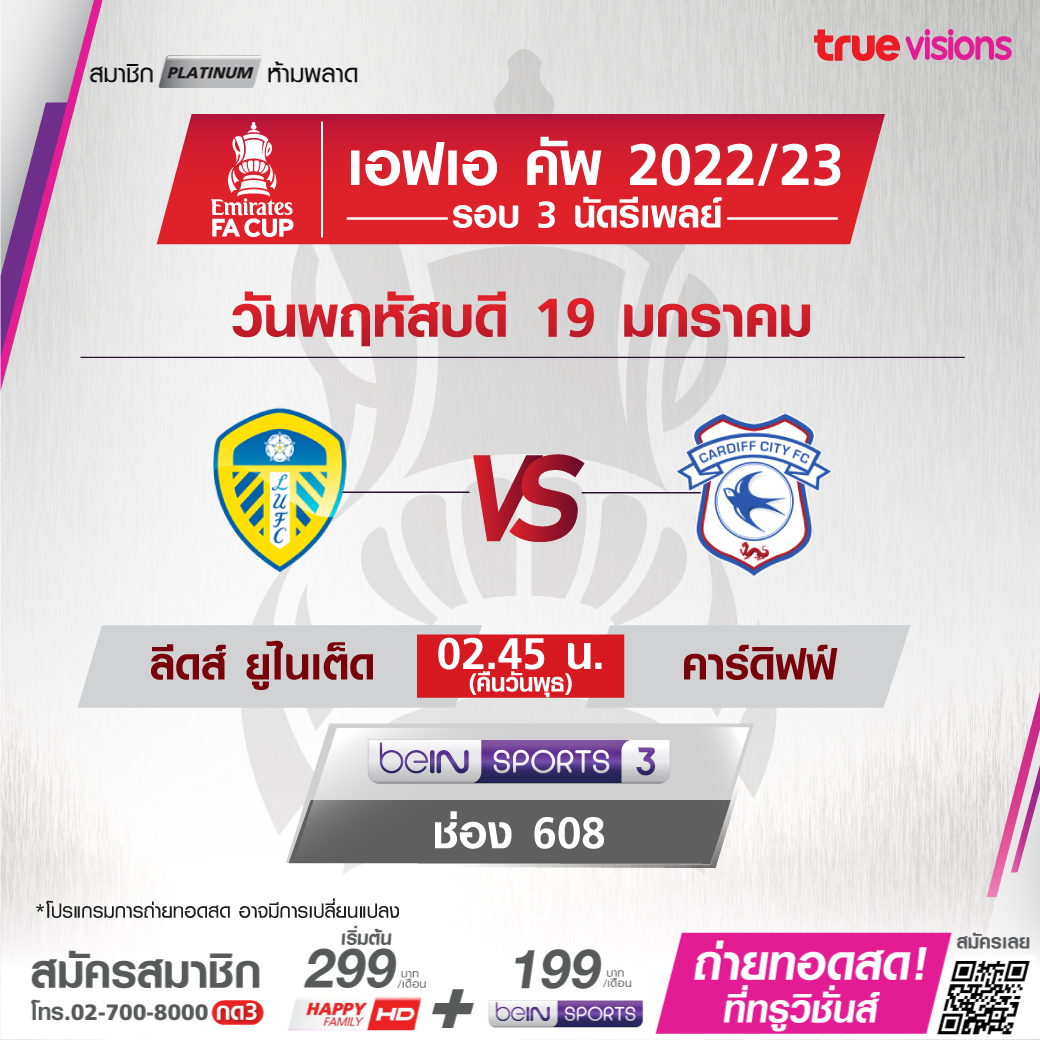 Leeds vs Cardiff เวลา 02.45-04.45 ทางช่อง beIN 3 (608)