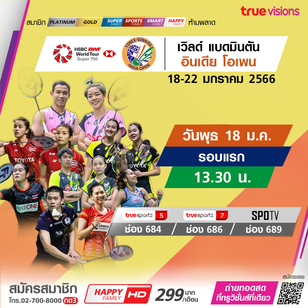 เปิดศักราชใหม่ กับความมันส์ของกีฬาแบดมินตันที่มีคิวตบกันต่อเนื่องเป็นสัปดาห์ที่ 2 กับรายการระดับ เวิลด์ ทัวร์ ซูเปอร์ 750 อินเดีย โอเพ่น ลุ้นนักแบดมินตันไทยคว้าชัยชนะในการดวลกับคู่แข่งมือพระกาฬของต่างชาติ ชมสด ทาง ทรูวิชั่นส์ ที่เดียว