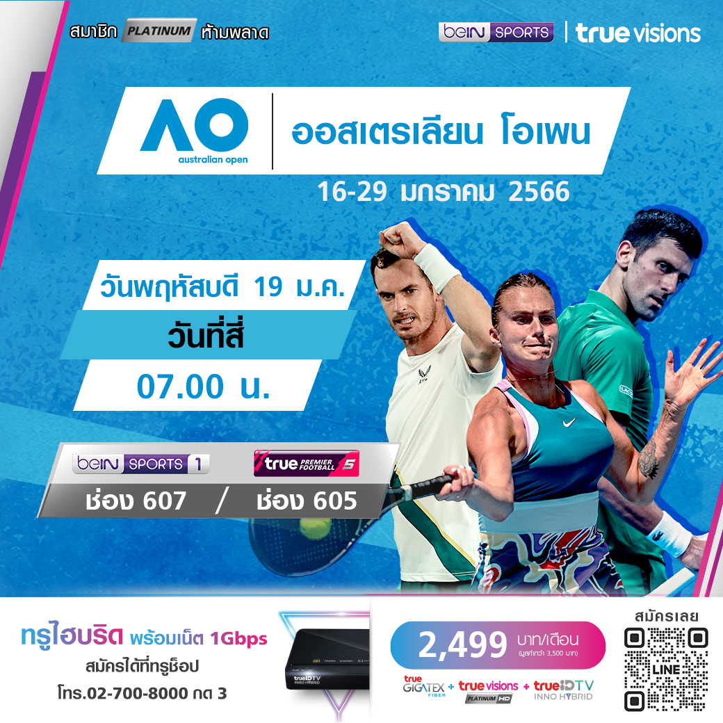 ศึกเทนนิสแกรนด์สแลมแรกของปี 2023 ออสเตรเลี่ยน โอเพ่น เข้าสู่การแข่งขันในวันที่สาม ร่วมเชียร์นักเทนนิสระดับโลก ชมสดในรอบเมนดรอว์ตั้งแต่รอบแรกจนถึงรอบชิงชนะเลิศ ที่ทรูวิชั่นส์