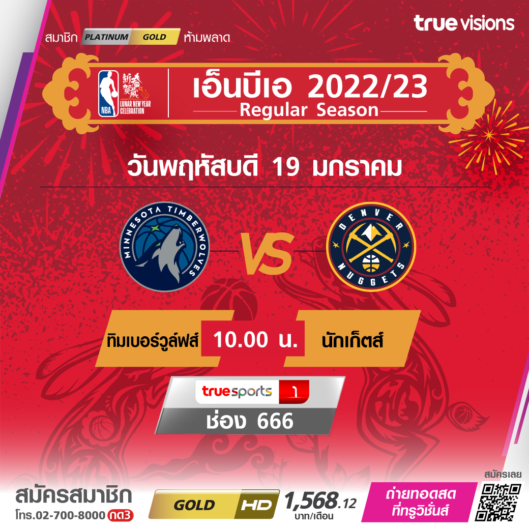 วันพฤหัสบดี 19 ม.ค. Timberwolves Vs Nuggets เวลา 10.00 ทางช่อง TS 1 (666)