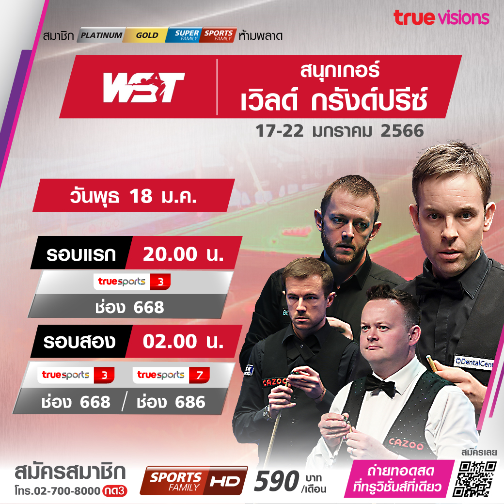 แฟนๆ สนุกเกอร์ พลาดไม่ได้ กับรายการเก็บคะแนนสะสม เวิลด์ กรังด์ปรีซ์ 2023 ที่คัดมาเฉพาะ 16 มือวางสูงสุดของปีนี้ วันนี้มีให้ลุ้นกันทั้งรอบแรกและรอบสอง ลุ้นกันว่าใครจะเข้าป้ายเป็นแชมป์ในปีนี้ ชมสด ทาง ทรูวิชั่นส์ ที่เดียว