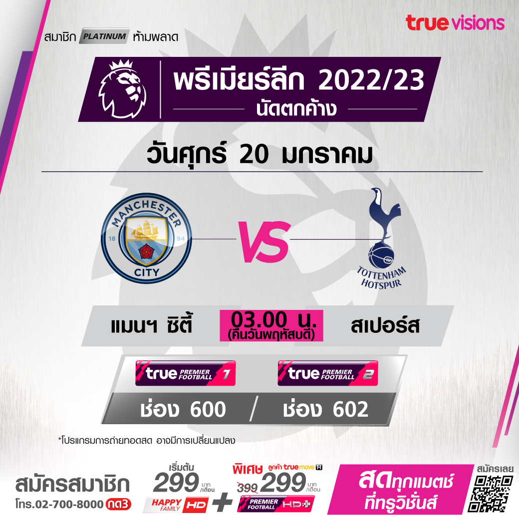 Man City vs Tottenham Hotspur เวลา 03:00 - 05:00 ทางช่อง TPF 1 (600) / TPF 2 (602)
