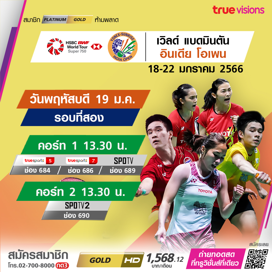แบดมินตันรายการระดับ เวิลด์ ทัวร์ ซูเปอร์ 750 อินเดีย โอเพ่น ในรอบที่สอง ลุ้นนักแบดมินตันไทยคว้าแชมป์ในรายการนี้ ชมสด ทาง ทรูวิชั่นส์ ที่เดียว