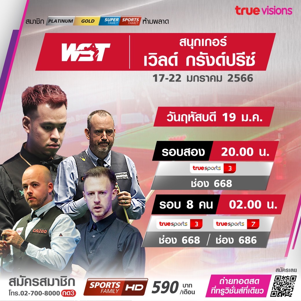 แฟนๆ สนุกเกอร์ พลาดไม่ได้ กับรายการเก็บคะแนนสะสม เวิลด์ กรังด์ปรีซ์ 2023 ที่คัดมาเฉพาะ 16 มือวางสูงสุดของปีนี้ วันนี้มีให้ลุ้นกันทั้งรอบสองและรอบ 8 คนสุดท้าย ลุ้นกันว่า "หมู ปากน้ำ" นพพล แสงคำ จะไปถึงแชมป์ได้หรือไม่ ชมสด ทาง ทรูวิชั่นส์ ที่เดียว