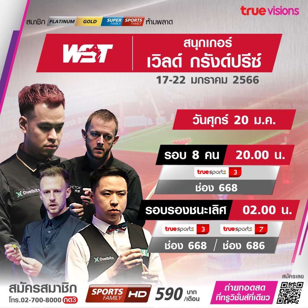 แฟนๆ สนุกเกอร์ พลาดไม่ได้ กับรายการเก็บคะแนนสะสม เวิลด์ กรังด์ปรีซ์ 2023 ร่วมเชียร์ "หมู ปากน้ำ" นพพล แสงคำ ที่ผ่านเข้าไปถึงรอบ 4 คนสุดท้ายได้เรียบร้อยจะสามารถไปถึงแชมป์ได้หรือไม่ ชมสด ทาง ทรูวิชั่นส์ ที่เดียว