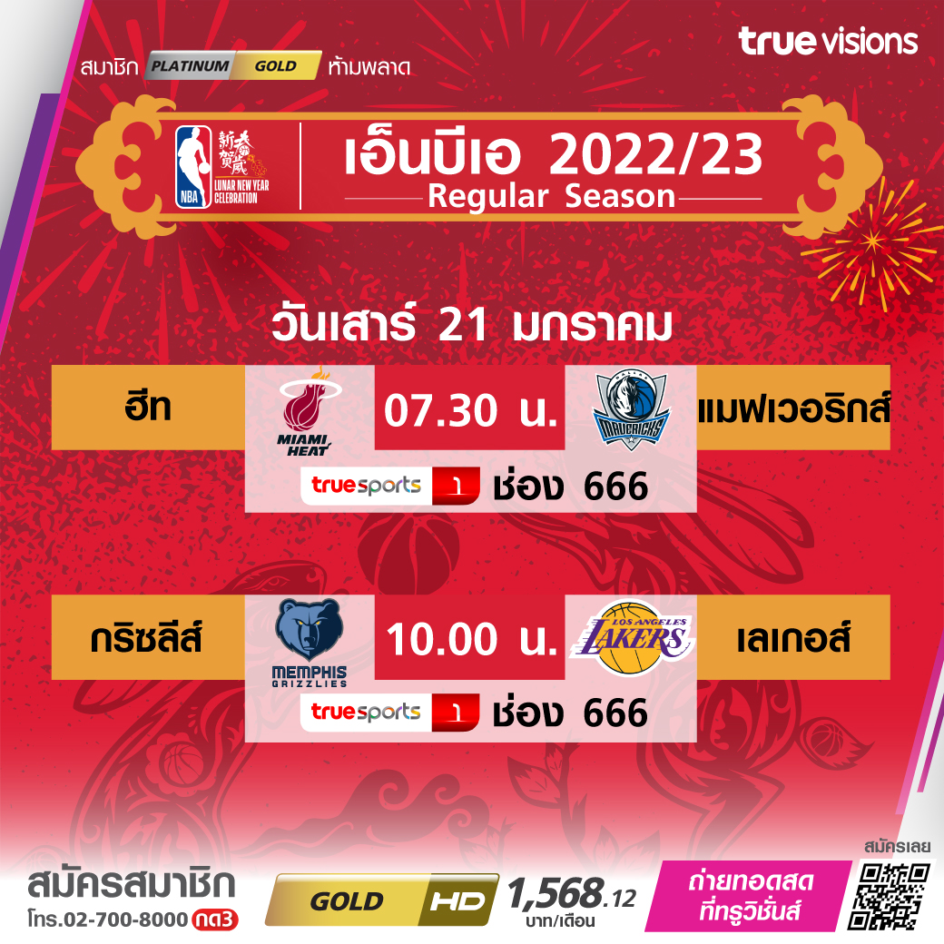 วันพฤหัสบดี 21 ม.ค. Grizzlies Vs Lakers เวลา 10.00 ทางช่อง TS 1 (666)
