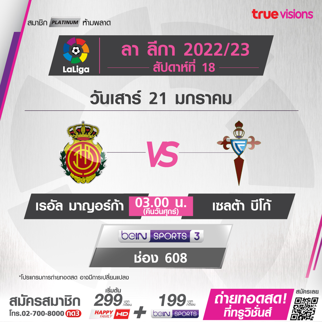 Mallorca vs Celta เวลา 03.00-05.00 ทางช่อง beIN 3 (608)