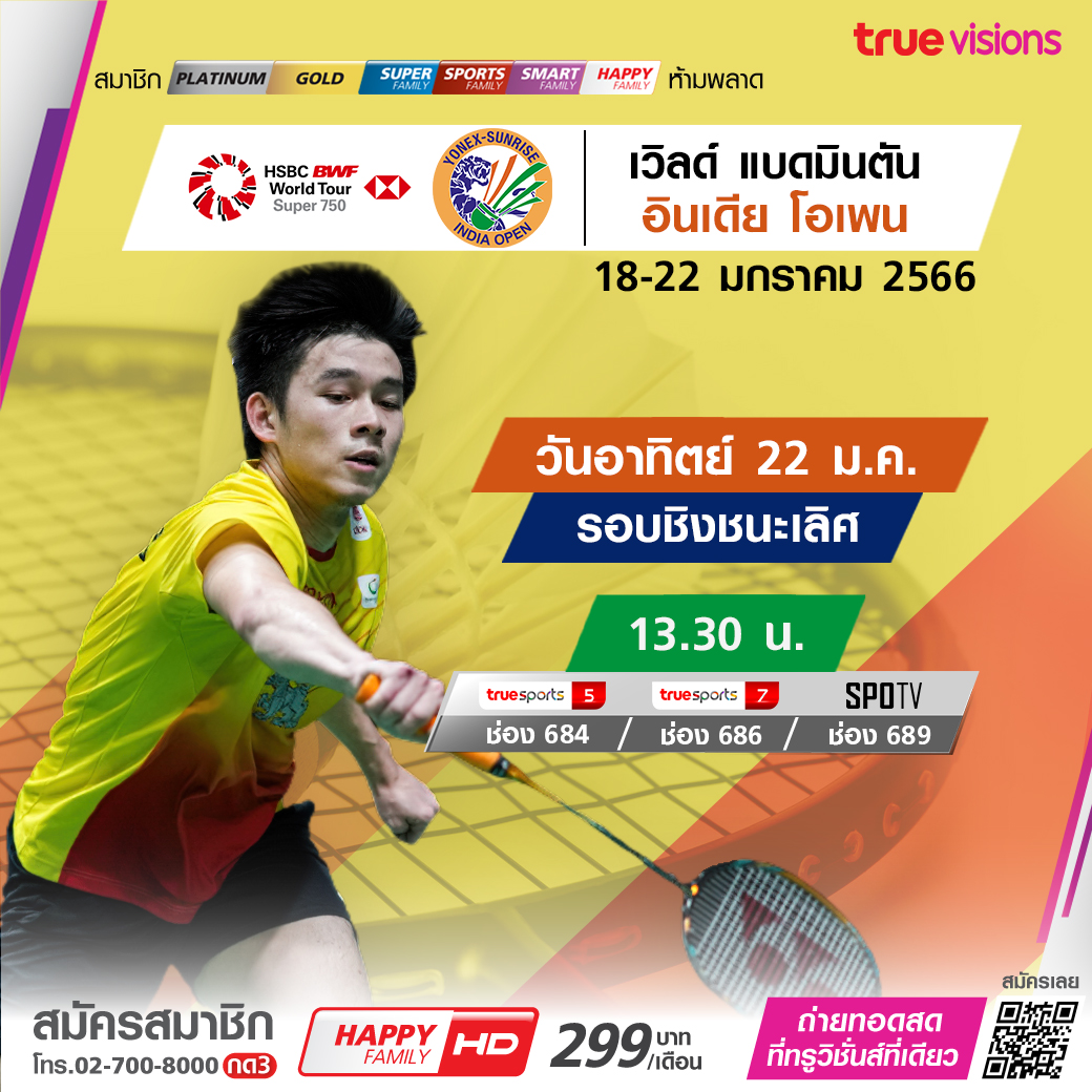แฟนแบดชาวไทย ส่งใจเชียร์ “วิว” กุลวุฒิ วิทิตศานต์ ประเภทชายเดี่ยว คว้าแชมป์แบดมินตันรายการระดับ เวิลด์ ทัวร์ ซูเปอร์ 750 อินเดีย โอเพ่น ชมสด ทาง ทรูวิชั่นส์ ที่เดียว