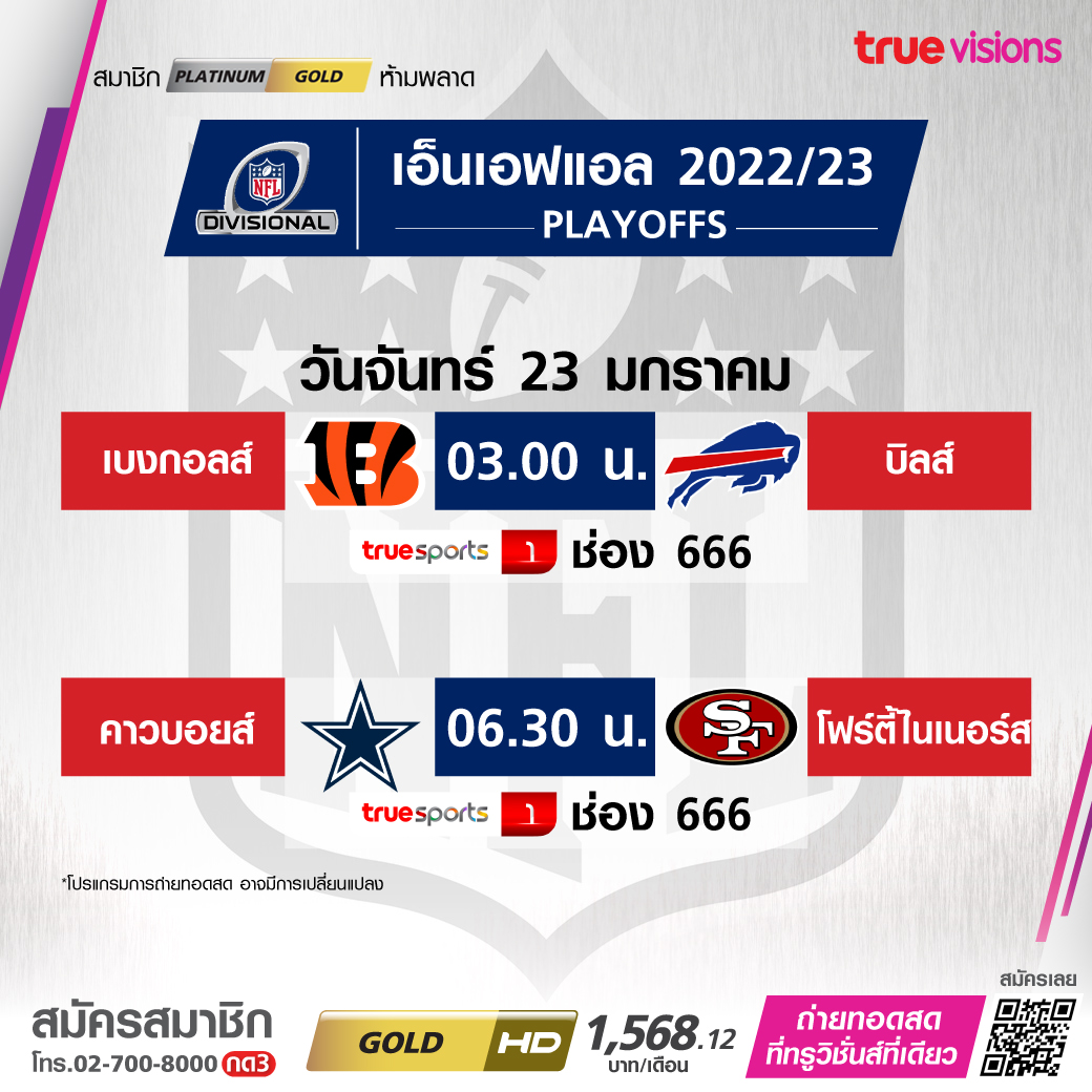 วันจันทร์ 23 ม.ค. Bengals Vs Bills เวลา 03.00 ทางช่อง TS 1 (666)
