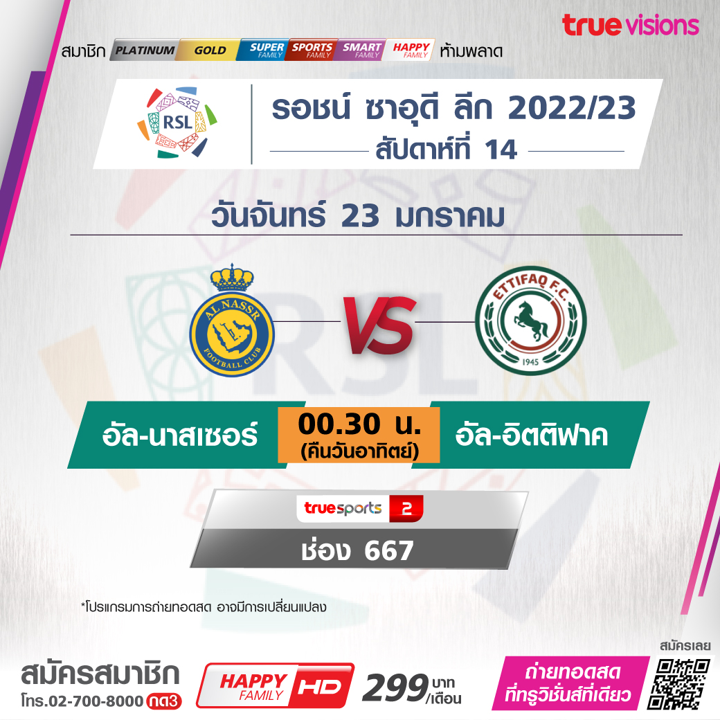 Al-Nassr vs Ettifaq เวลา 00.30-02.30 ทางช่อง TS 2 (667)