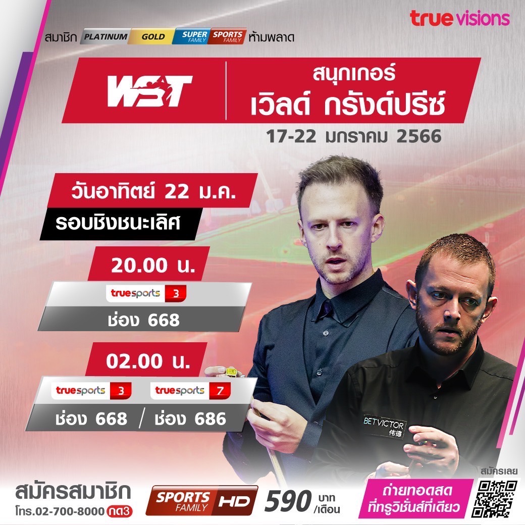 แฟนๆ สนุกเกอร์ พลาดไม่ได้ กับรายการเก็บคะแนนสะสม เวิลด์ กรังด์ปรีซ์ 2023 ในรอบชิงชนะเลิศ ใครจะคว้าแชมป์รายการนี้ไปครอง ชมสด ทาง ทรูวิชั่นส์ ที่เดียว