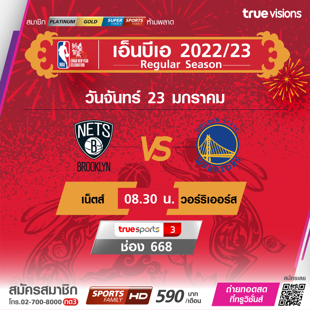 วันจันทร์ 23 ม.ค. Nets Vs Warriors เวลา08.30 ทางช่อง TS 3 (668)