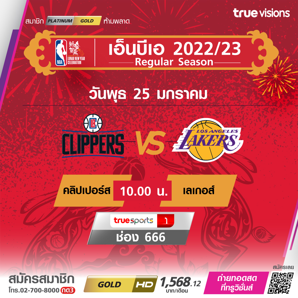 วันพุธ 25 ม.ค. Clippers Lakers เวลา 10.00 ทางช่อง TS 1 (666)