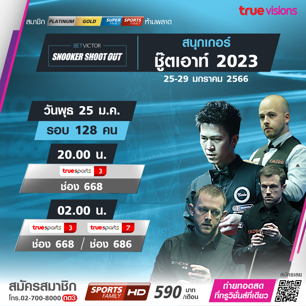 ห้ามพลาดจริงๆ สำหรับแฟนกีฬาสนุกเกอร์ สัปดาห์นี้ เปลี่ยนบรรยากาศมาสู่ความสนุกตื่นเต้นและเร้าใจ กับศึกชู้ตเอาท์ เกมวัดใจ เฟรมเดียว น็อกเอาท์ ตัดสินกันใน 10 นาที อะไรก็เกิดขึ้นได้ มือดีๆ ของโลกร่วมดวลกันอย่างคับคั่ง ชมสดจุใจ ชมสด ทาง ทรูวิชั่นส์ ที่เดียว