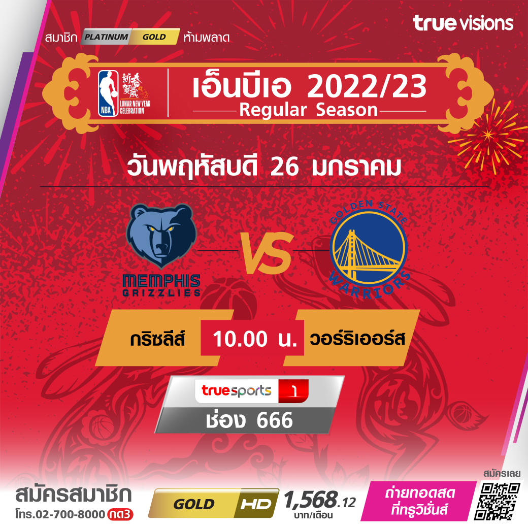 วันพฤหัสบดี 26 ม.ค. Grizzlies Vs Warriors เวลา 10.00 ทางช่อง TS 1 (666)