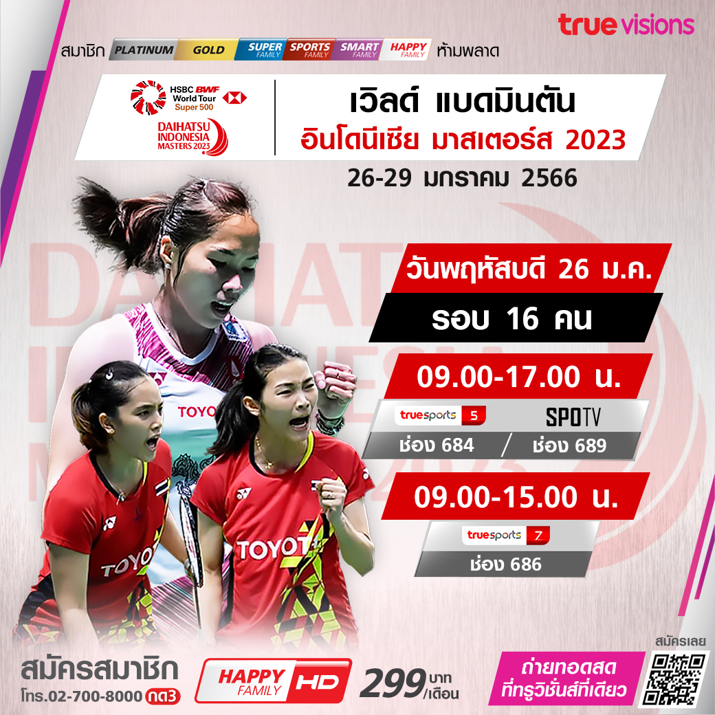 ไม่ต้องพัก ไม่ต้องเบรค เกมแบดมินตันลุยกันต่อเป็นสัปดาห์ที่ 3 ชมและเชียร์นักแบดมินตันไทยโชว์ผลงานเด็ด สู้กับนักแบดมินตันชั้นนำของโลก เพื่อคว้าชัยชนะและลุ้นแชมป์ อินโดนีเซีย มาสเตอร์ส ชมสดจุใจ ชมสด ทาง ทรูวิชั่นส์ ที่เดียว