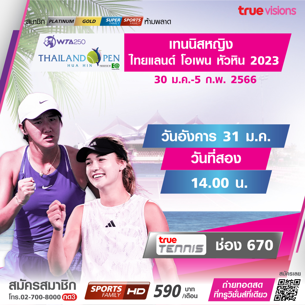 เทนนิสหญิง WTA Tour รายการ ไทยแลนด์ โอเพ่น 2023 ที่หัวหิน นักเทนนิสสาวมือดีของทัวร์ ร่วมแข่งขันและลุ้นแชมป์อันทรงเกียรติคับคั่ง ชมสด จุใจ ชมสด ทาง ทรูวิชั่นส์ ที่เดียว