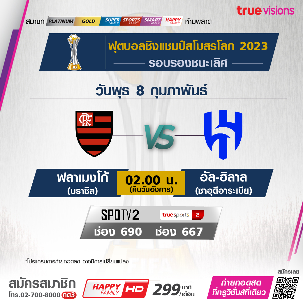 Flamengo vs Al-Hilal เวลา 02.00-04.00 ทางช่อง SPOTV 2 (690) / TS 2 (667)