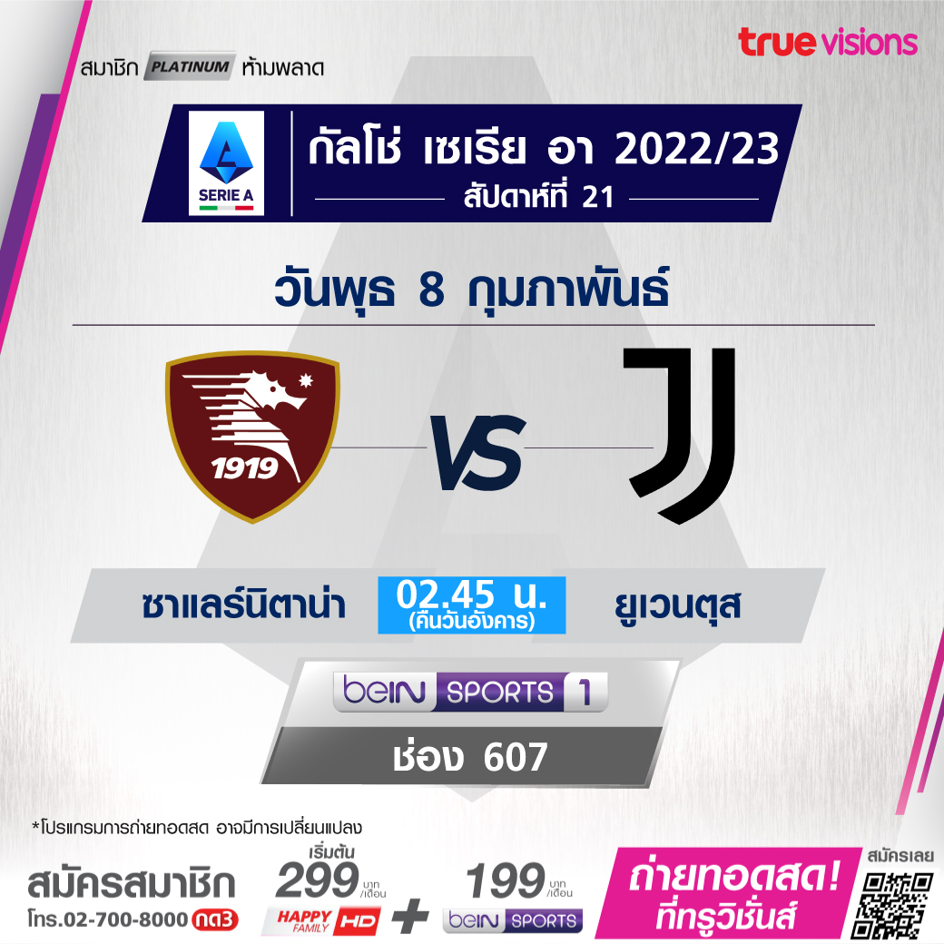 Salernitana vs Juventus เวลา 02.45-04.45 ทางช่อง beIN 1 (607)