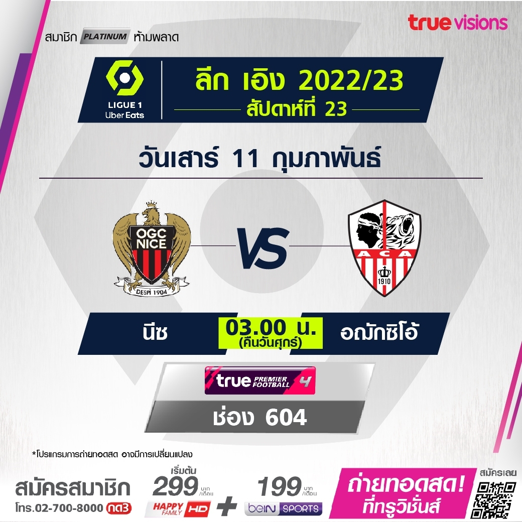 Nice vs AC Ajaccio เวลา 03.00-05.00 ทางช่อง TPF 4 (604)