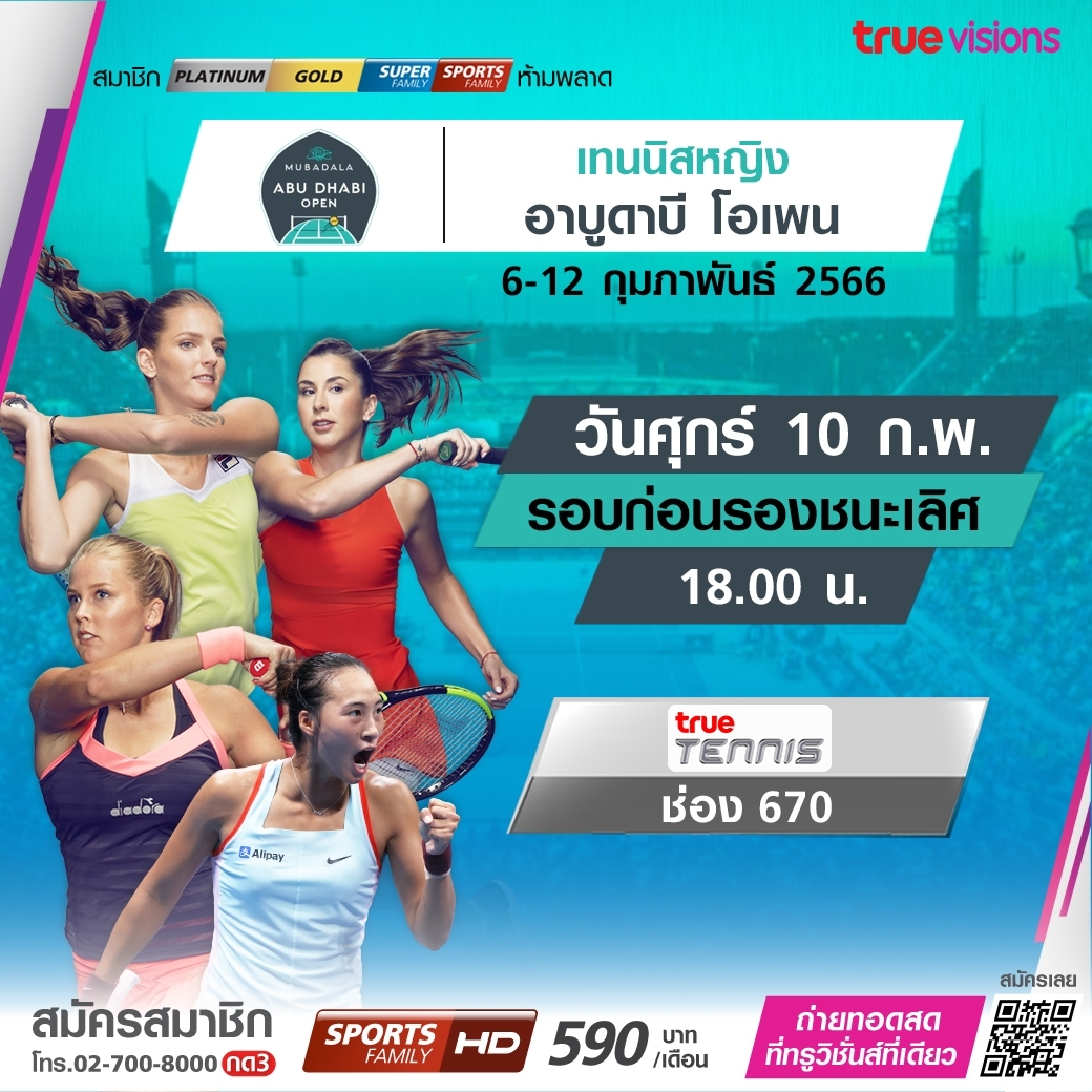 เทนนิสหญิง ดับเบิ้ลยูทีเอ ทัวร์ ฤดูกาล 2023 รายการ อาบูดาบี โอเพ่น ที่ อาบูดาบี สหรัฐอาหรับเอมิเรตส์ ในรอบก่อนรองชนะเลิศ ชมและเชียร์นักเทนนิสฝีมือระดับโลก ใครจะก้าวไปเป็นแชมป์ ชมสด ครบทุกรอบ ทาง ทรูวิชั่นส์ ที่เดียว