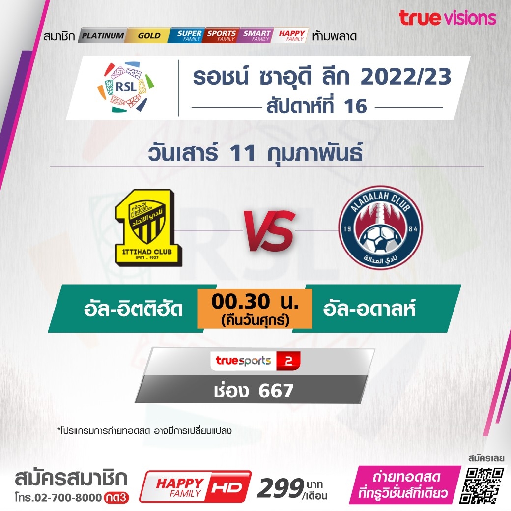 Al-Ittihad vs Al-Adalah เวลา 00.30-02.30 ทางช่อง TS 2 (667)