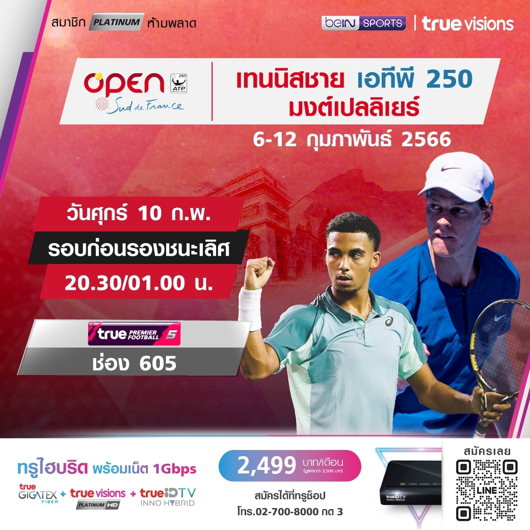 เทนนิสเอทีพี ทัวร์ 250 ซีรี่ส์ ศึก มงต์เปลลิเย่ร์ โอเพ่น รอบก่อนรองชนะเลิศ เชียร์นักเทนนิส ระดับโลก เข้าสู่รอบต่อไป ชมสด ทาง ทรูวิชั่นส์ ที่เดียว