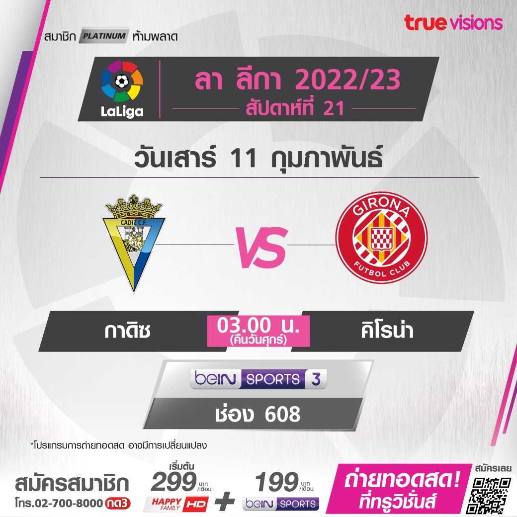 Cadiz vs Girona เวลา 03.00-05.00 ทางช่อง beIN 3 (608)