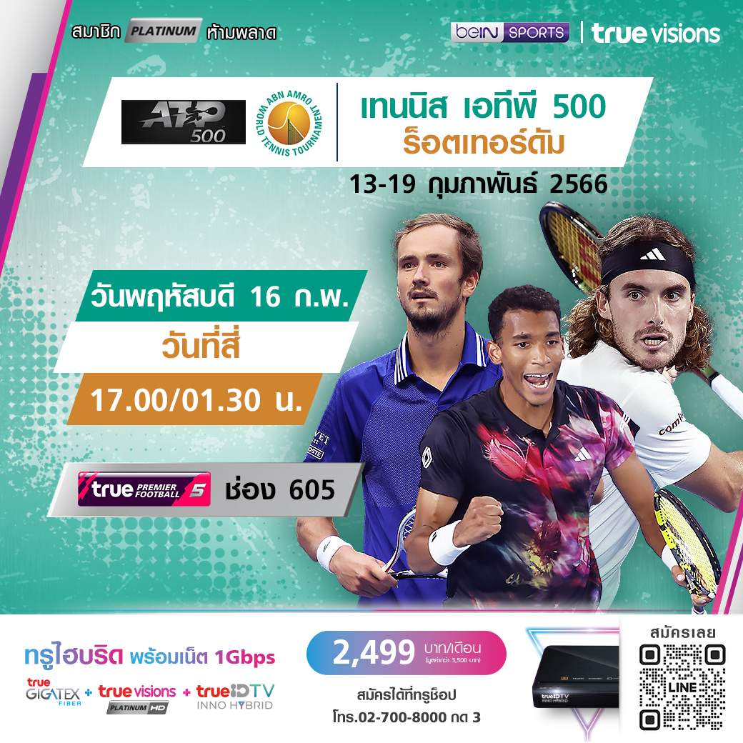 เทนนิสชาย เอทีพี เวิลด์ ทัวร์ 500 ซีรีส์ รายการสำคัญ เอบีเอ็น แอมโร โอเพ่น รายการสุดคลาสสิกของยุโรป ที่เมืองร็อตเทอร์ดัม ประเทศเนเธอร์แลนด์ มือดีๆ ของทัวร์ร่วมดวลและลุ้นแชมป์กันอย่างคับคั่ง ชมสด ครบทุกรอบ