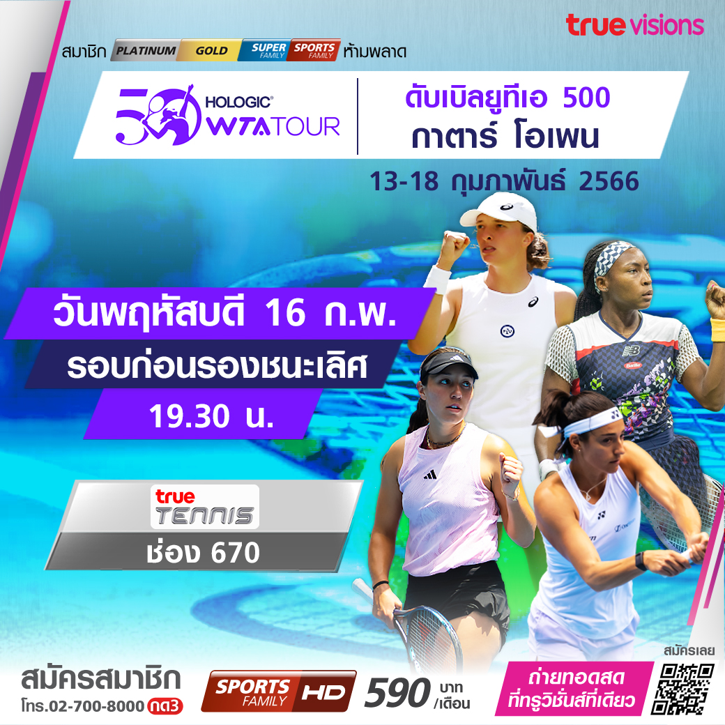 รอบก่อนรองชนะเลิศ เวลา 19.30 ทางช่อง True Tennis (670)