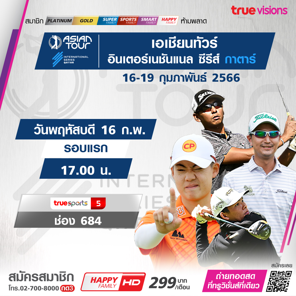 ยึดตะวันออกกลางเป็นสังเวียนดวลวงสวิงฤดูกาลใหม่ 2023 ต่อเนื่องกันกับ เอเชียนทัวร์ อินเตอร์เนชั่นแนล ซีรีส์ กาตาร์ ร่วมลุ้นโปรหนุ่มไทย สร้างผลงานกระหึ่มเอเชีย รวมถึงโปรนานาชาติ จาก โดฮา กอล์ฟ คลับ ประเทศกาตาร์ ชมสด ครบทุกรอบ ทาง ทรูวิชั่นส์ ที่เดียว