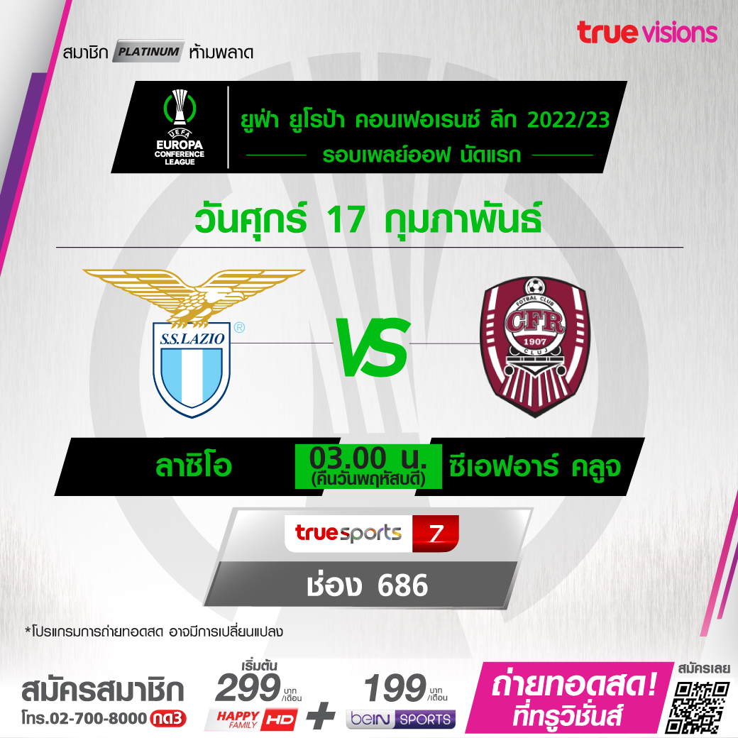 Lazio vs Cluj เวลา 03.00-05.00 ทางช่อง TS 7 (686)