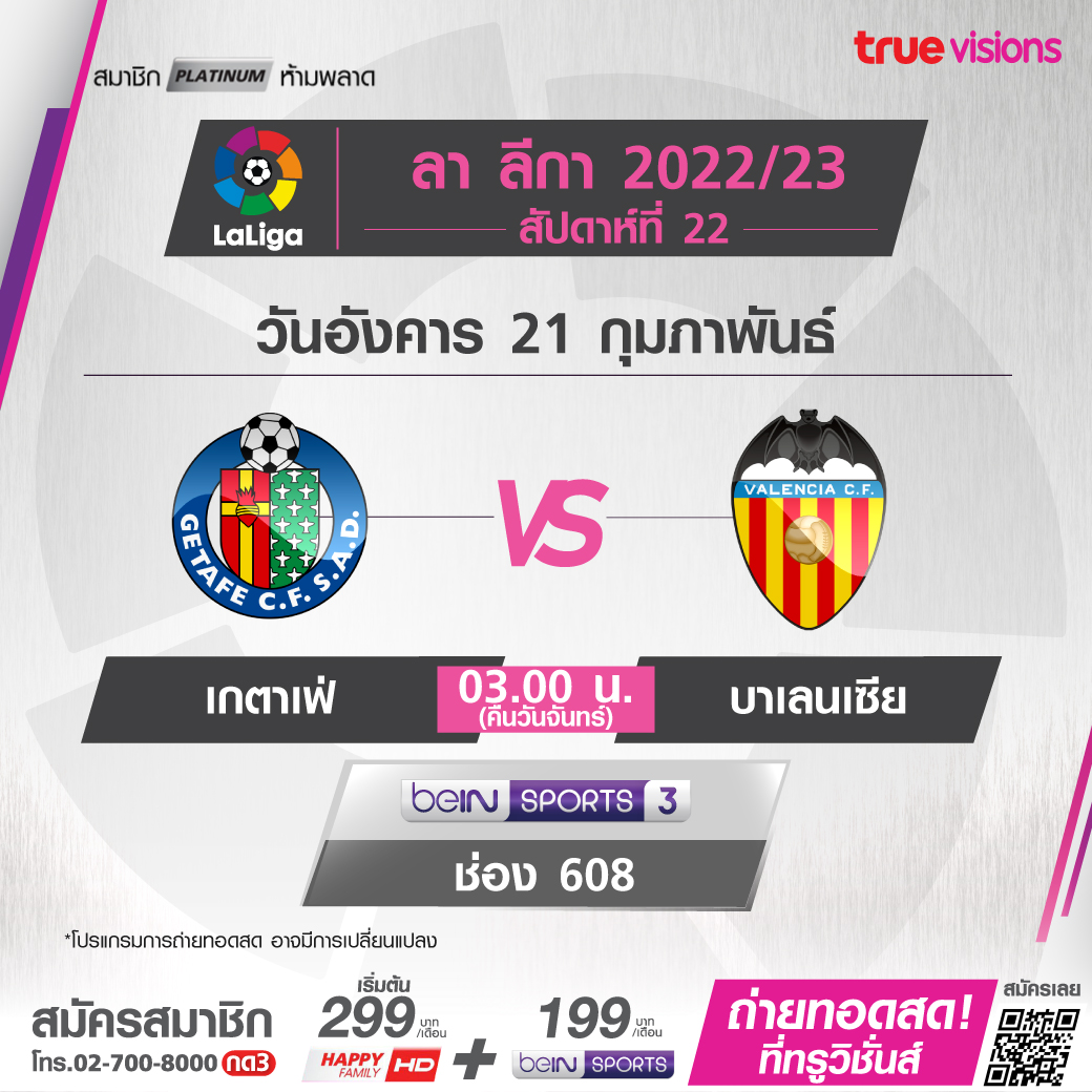 Getafe vs Valencia เวลา 03.00-05.00 ทางช่อง beIN 3 (608)