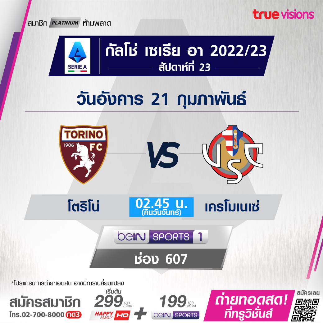 Torino vs Cremonese เวลา 02.45-04.45 ทางช่อง beIN 1 (607)