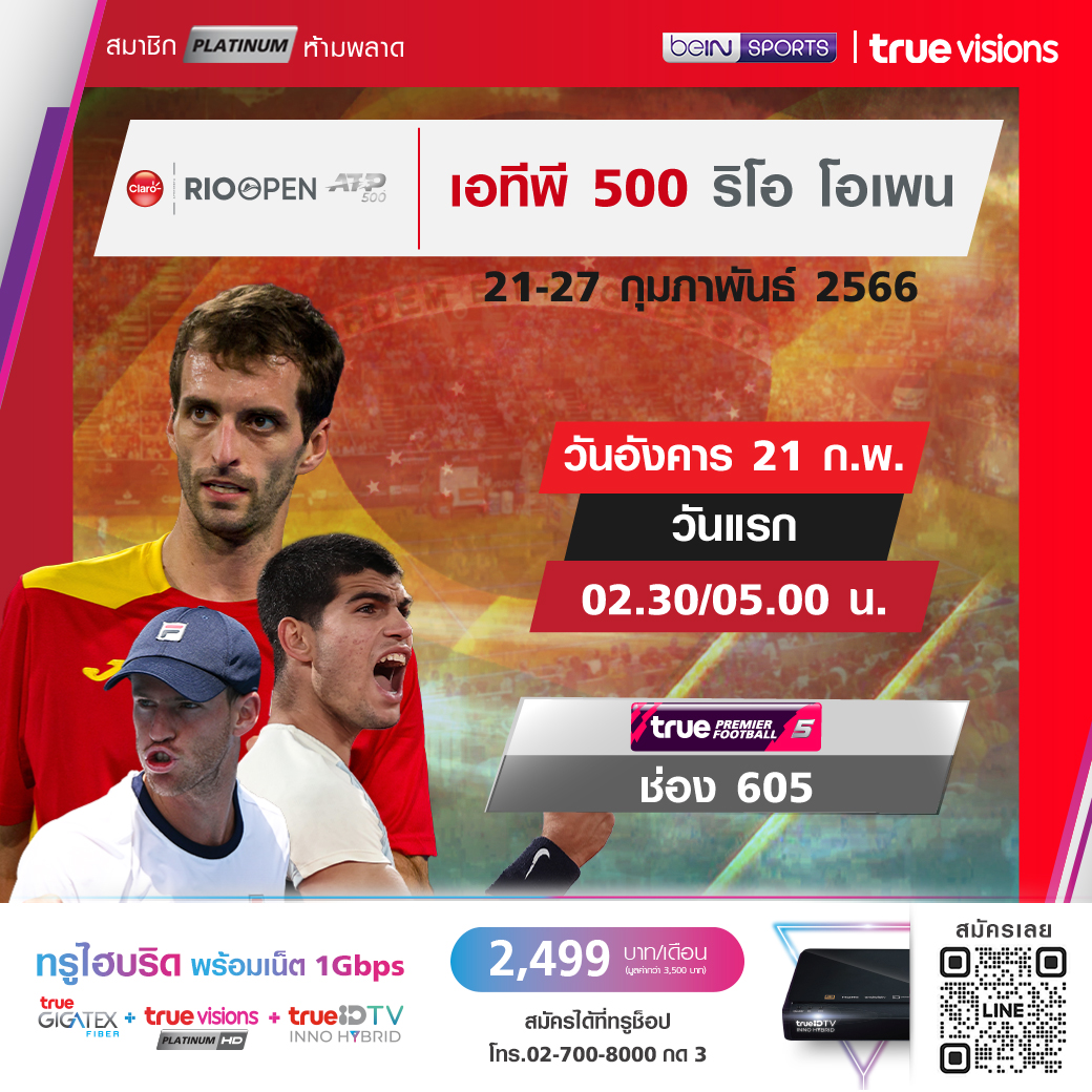 เทนนิสชายระดับเวิลด์ ทัวร์ 500 ซีรีส์ ที่เมืองริโอ เดอ จาเนโร ประเทศบราซิล กับรายการ ริโอ โอเพ่น สังเวียนคอร์ตดินที่รวมเอาสุดยอดฝีมือที่เชี่ยวชาญและถนัดการเล่นบนเคลย์คอร์ตมาดวลกันเพื่อหาผู้ที่แข็งแกร่งที่สุด ชมสดทุกรอบ ทาง ทรูวิชั่นส์ ที่เดียว