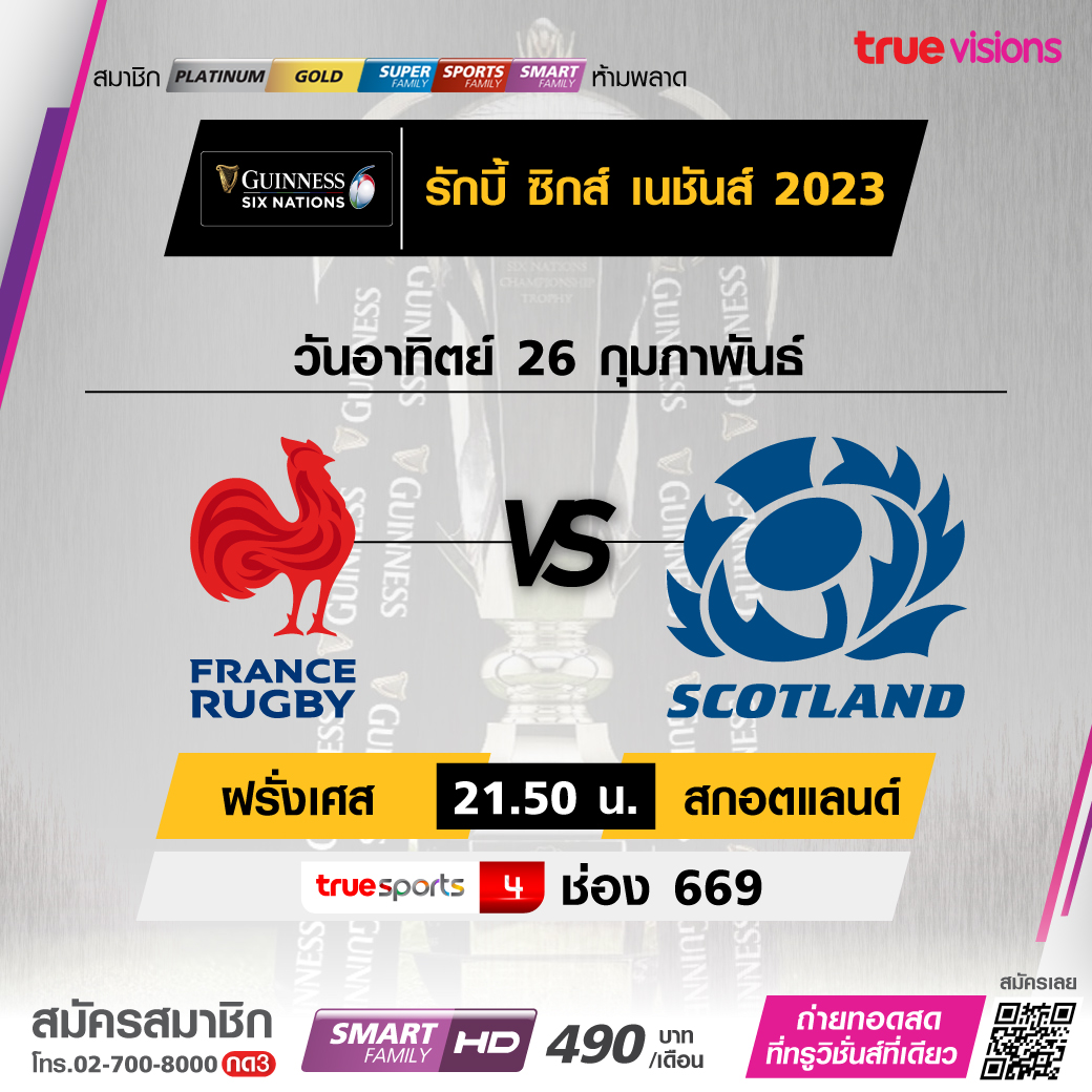 France vs. Scotland เวลา 21.50-00.00 ทางช่อง TS4 (669)