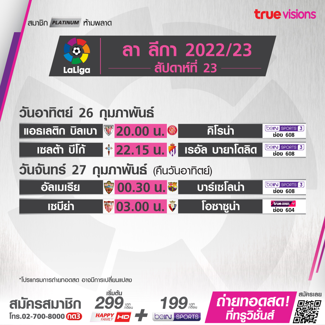Athletic vs Girona เวลา 20.00-22.00 ทางช่อง beIN 3 (608)
