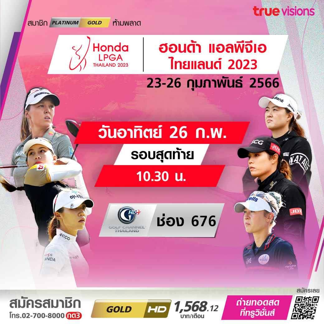 ยิ่งใหญ่ที่สุดในไทย กับกอล์ฟหญิง แอลพีจีเอ ทัวร์ รายการ ฮอนด้า แอลพีจีเอ ไทยแลนด์ 2023 ในวันสุดท้าย ลุ้นและเชียร์โปรสาวไทยทำผลงานแข่งกับนักกอล์ฟมือระดับโลกจากนานาชาติเพื่อตำแหน่งแชมป์ ชมสดจาก สยามคันทรี่ คลับ พัทยา โอลด์ คอร์ส ชลบุรี ทาง ทรูวิชั่นส์