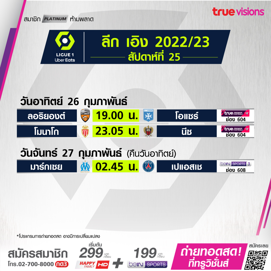 Marseille vs PSG เวลา 02.45-04.45 ทางช่อง beIN 3 (608)