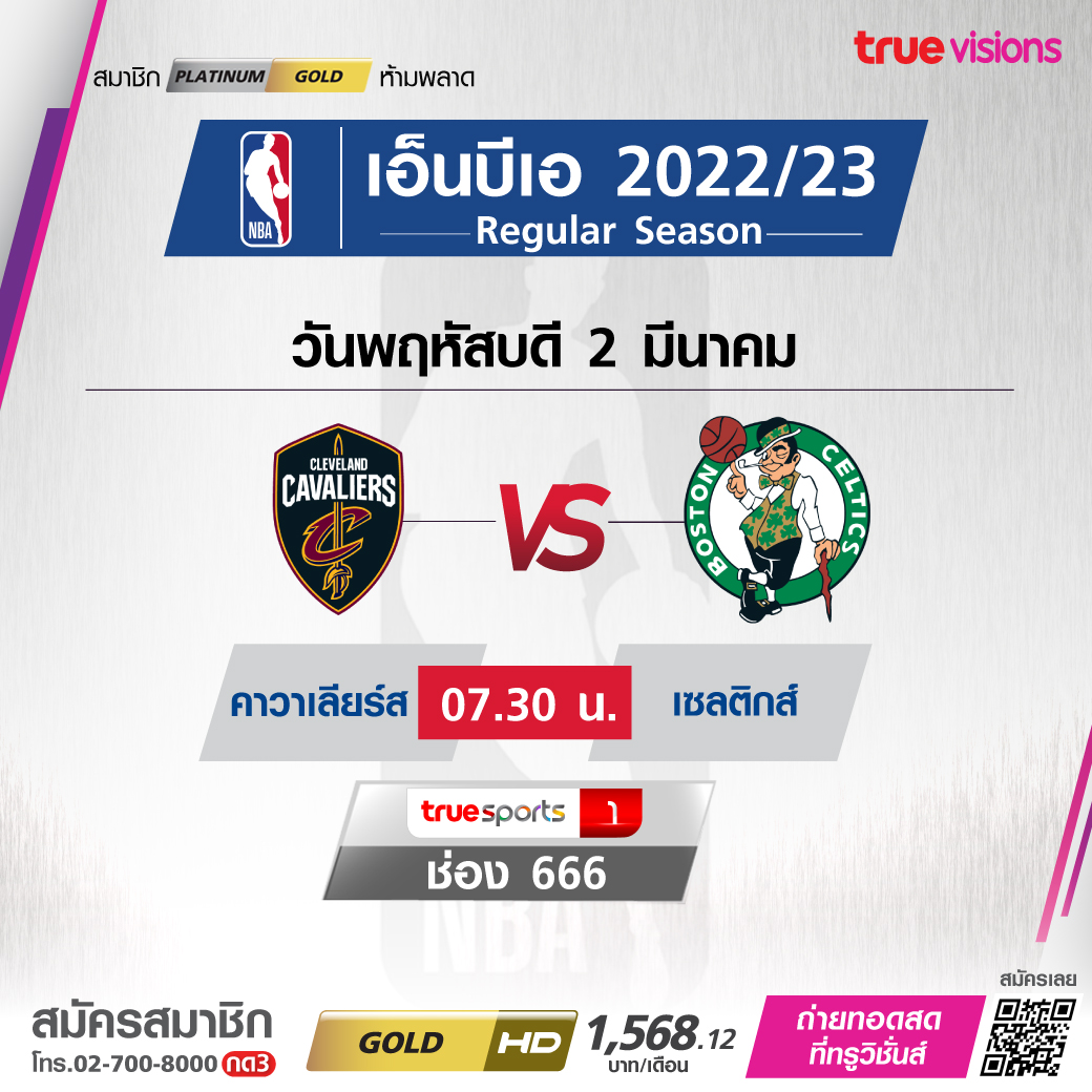 วันพฤหัสบดี 2 มีนาคม Cavaliers Vs Celtics เวลา07.30 ทางช่อง TS 1 (666)