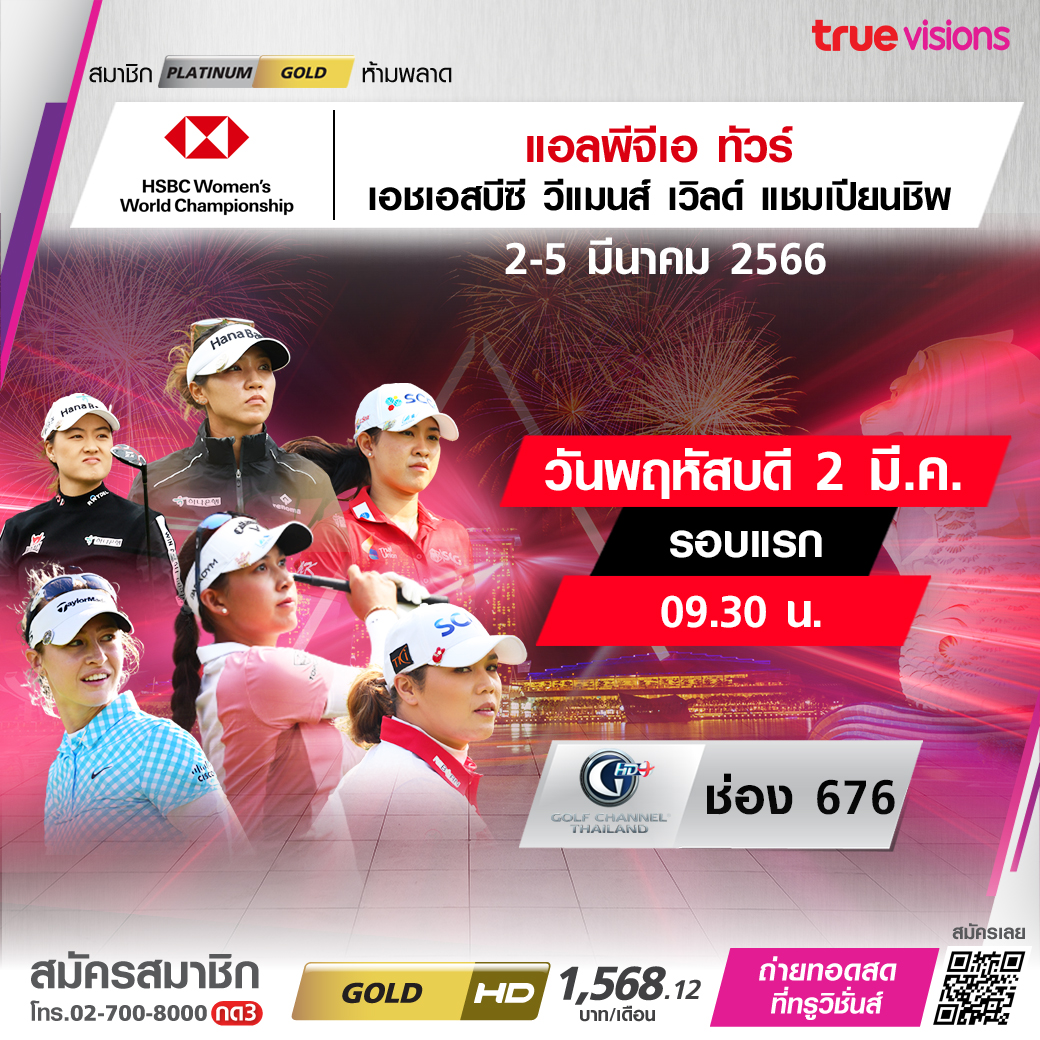 กอล์ฟหญิง แอลพีจีเอ ทัวร์ แข่งขันต่อเนื่องที่สิงคโปร์ กับรายการสำคัญ เอชเอสบีซี วีเมนส์ เวิลด์ แชมเปี้ยนชิพ 2023 ร่วมลุ้นและเชียร์โปรสาวไทย แข่งกันทำผลงานสู้กับโปรนานาชาติ ชมสดครบทั้ง 4 วัน ชมสด ทาง ทรูวิชั่นส์