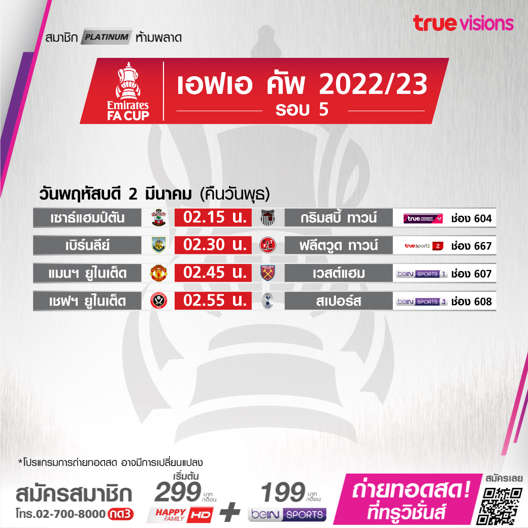 วันพฤหัสบดี 2 มีนาคม รอบแรก เวลา 08.00 ทางช่อง TS 5 (684)
