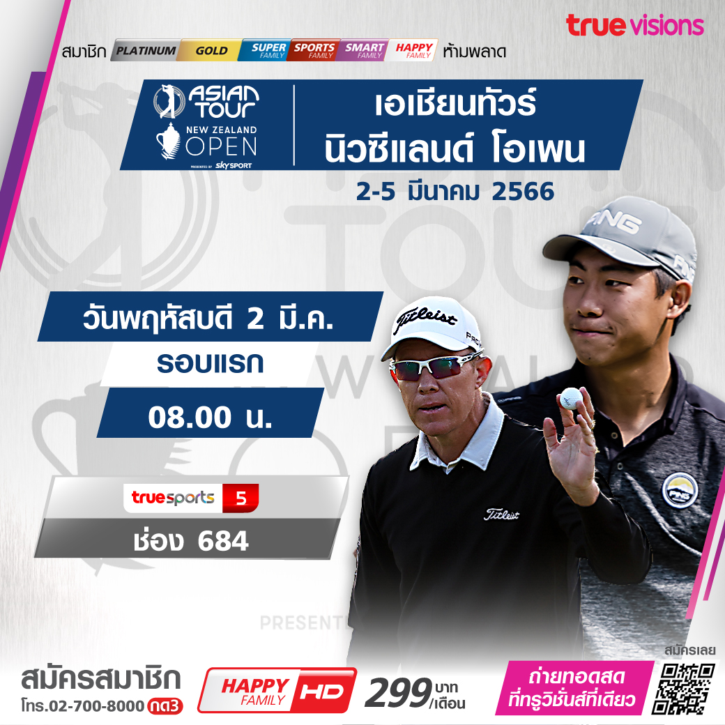 แฟนกอล์ฟตามเชียร์กันต่อในสัปดาห์นี้ กับกอล์ฟ เอเชี่ยน ทัวร์ รายการ นิวซีแลนด์ โอเพ่น ชมสด ครบทั้ง 4 วัน จากสนาม มิลล์บรู๊ค รีสอร์ท ชมสด ทาง ทรูวิชั่นส์ ที่เดียว
