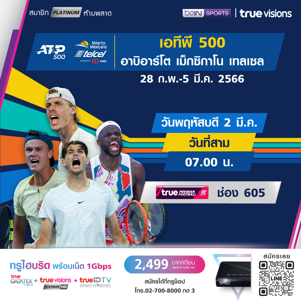 เทนนิส เอทีพี เวิลด์ ทัวร์ ซูเปอร์ 500 รายการ อบีเอร์โต้ เม็กซิกาโน่ เทลเซล ที่เม็กซิโก เข้าสู่วันที่สาม เชียร์นักเทนนิสระดับโลก เข้าร่วมชิงชัยในรายการนี้ ชมสดครบทุกรอบ ทาง ทรูวิชั่นส์