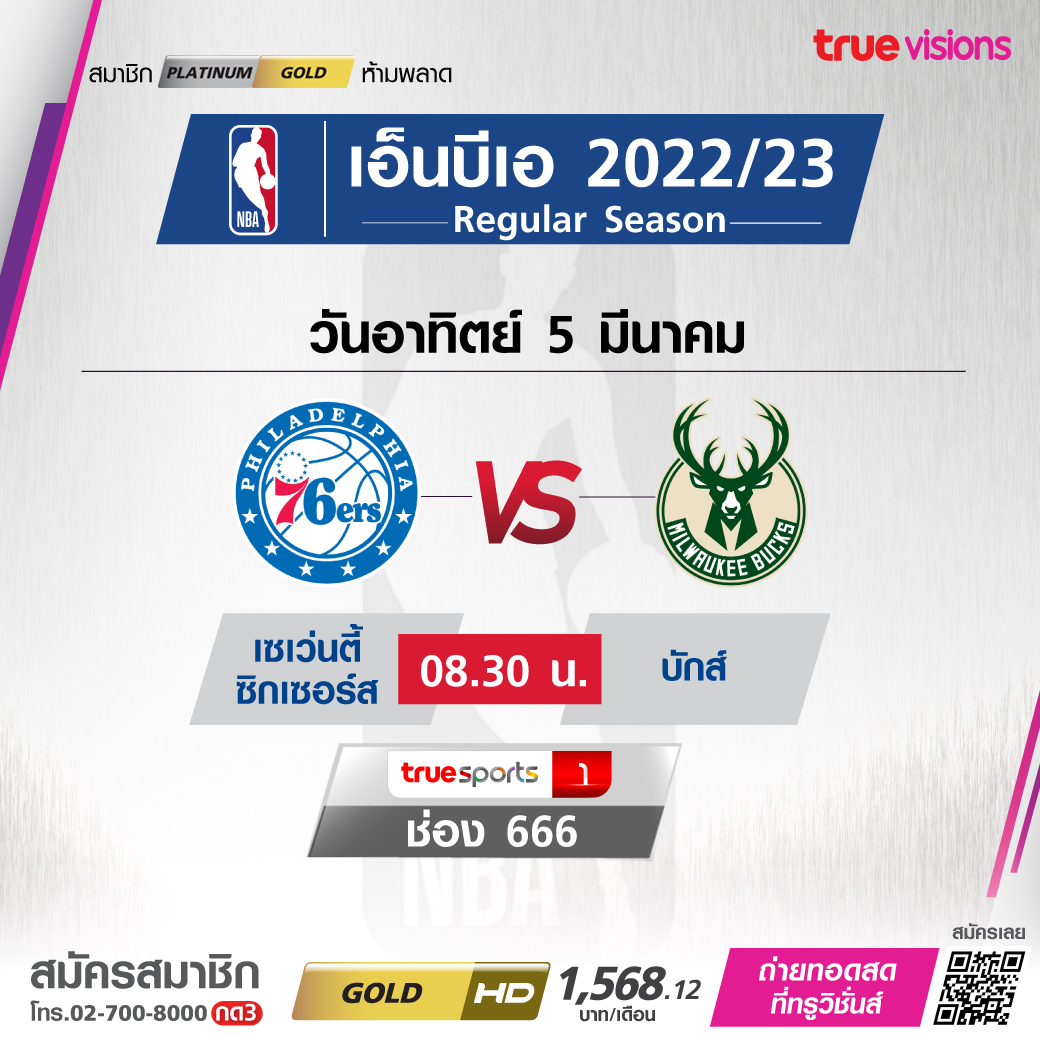 วันอาทิตย์ 5 มี.ค. 76ERS Vs Bucks 08.30 ทางช่อง TS 1 (666)