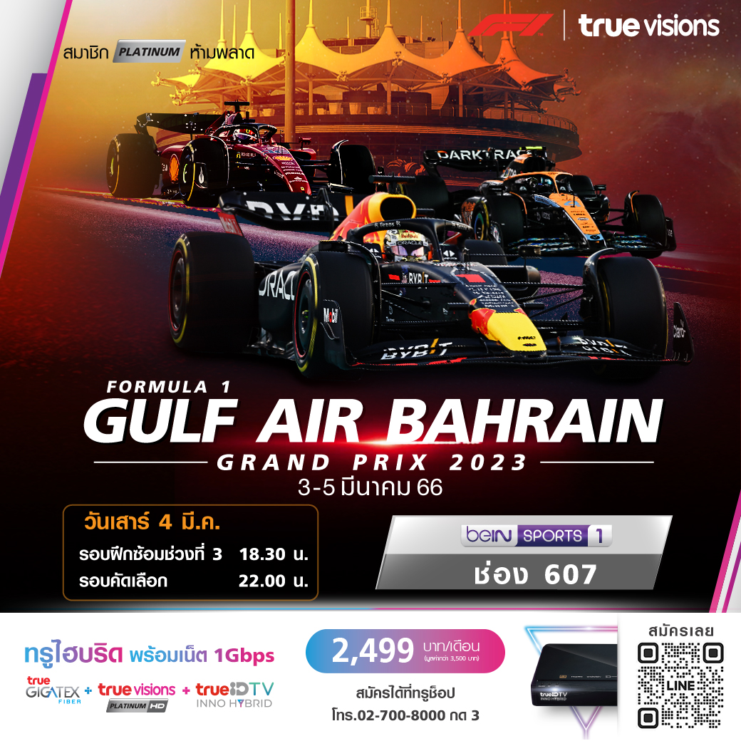 การรอคอยของแฟนๆ ฟอร์มูล่า วัน สิ้นสุดลงแล้วในสัปดาห์นี้ ความมันส์และความเร้าใจของสุดยอดการแข่งขันรถสูตร 1 ชิงแชมป์โลก จะระเบิดขึ้นกับสนามแรกของฤดูกาล 2023 กัล์ฟ แอร์ บาห์เรน กรังด์ปรีซ์ ชมสดจุใจในวันที่สอง เริ่มด้วยรอบฝึกซ้อมช่วงที่ 3 และรอบคัดเลือกจัดอันดับกริดสตาร์ท ชมสดทาง ทรูวิชั่นส์ ที่เดียว